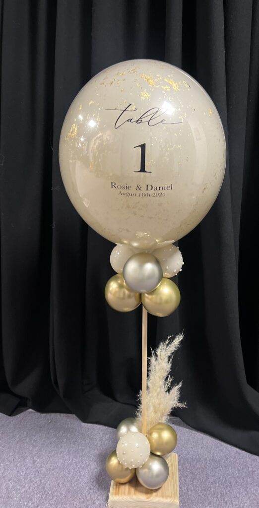 Bang on trend, our table balloon displays are the perfect way to dress the table(s) for any event. They create an impressive visual impact and are the perfect way to add the “wow” factor to the room.