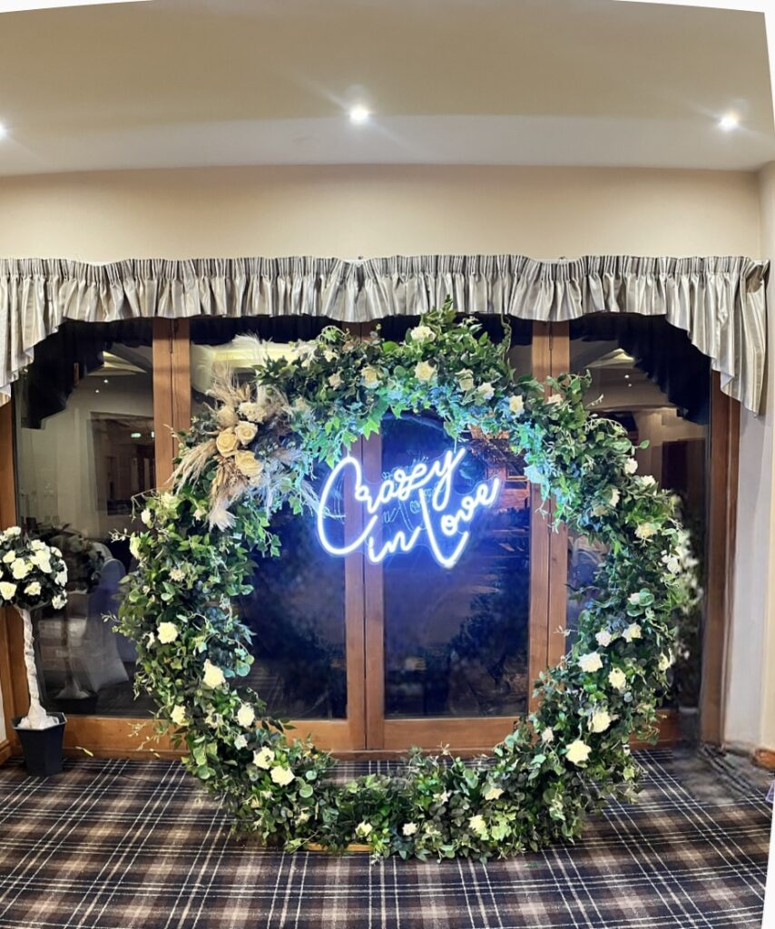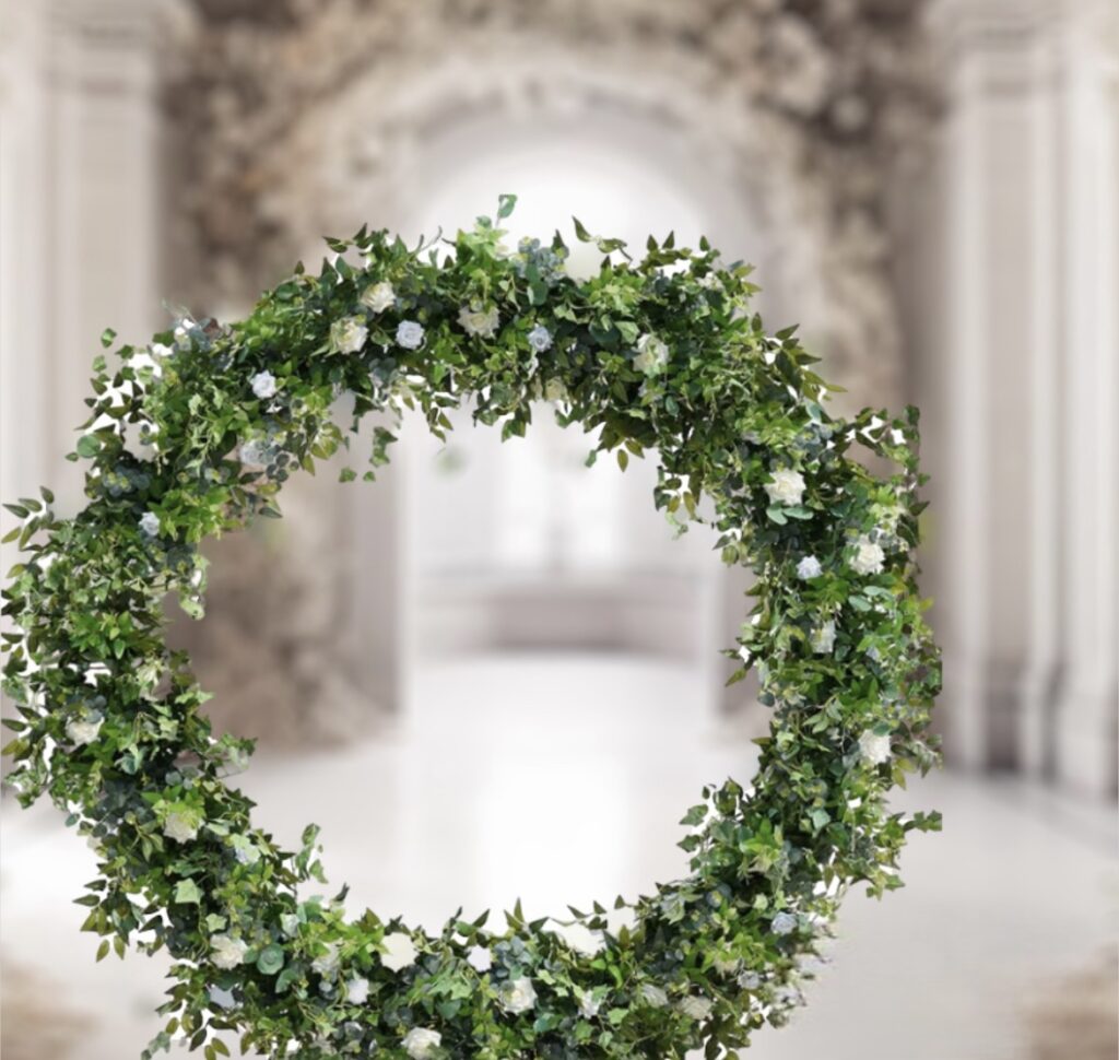 Our beautiful Foliage Moongate is such an elegant and versatile addition to our collection. It looks great as a backdrop for photos or as a centrepiece for a more formal setting. It is often used at weddings as a stunning backdrop for guest photo’s, as a beautiful statement table plan or even placed behind the top table to frame the newlywed couple.